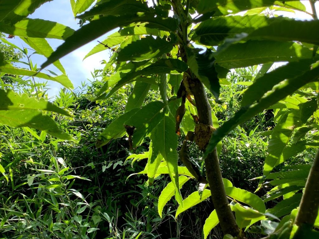 ここはどこ??みたいな状況。栗の木も見えるんですが、草に埋もれてよくわからないですね。。
