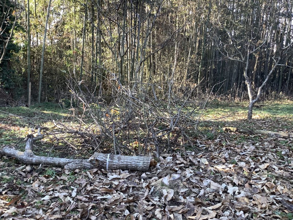 上の畑は、ここ数年、台風やらテッポウムシやらで木が数本倒れているので、大きな幹は切らず、
