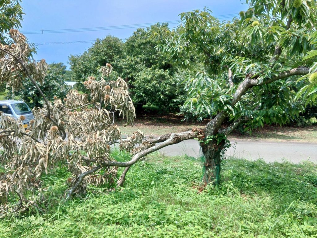 先日、家族が畑の様子を連絡してくれたのですが、「上の畑の枝が折れてる」とのこと。