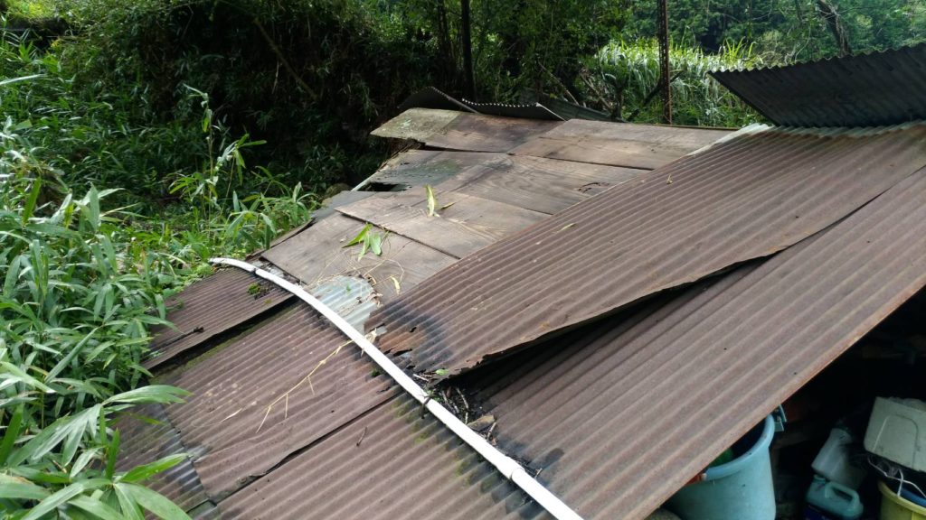 ↑物置き場のトタン屋根が飛ばされてしまっていました。