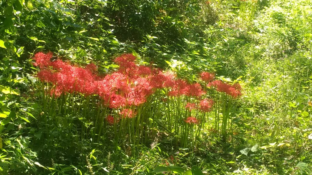 毎年、収穫の手伝いに行ったときには、彼岸花はそろそろ散るかというところなのですが、