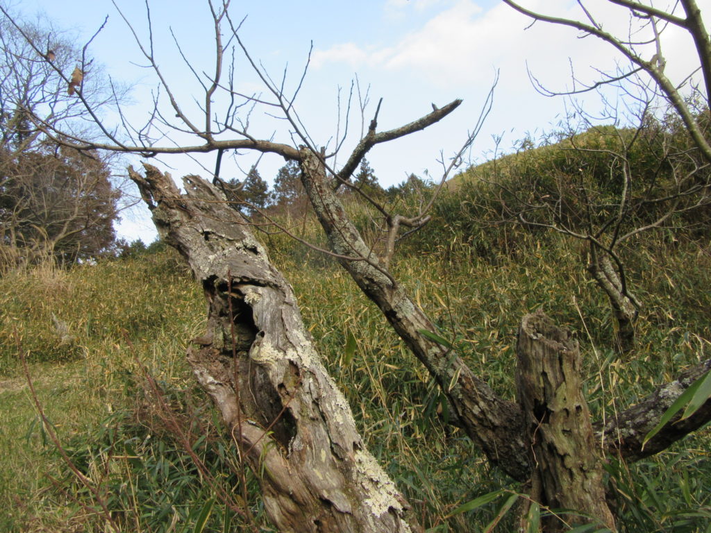 幹はボコボコに穴があいて、枯れている部分も多く、