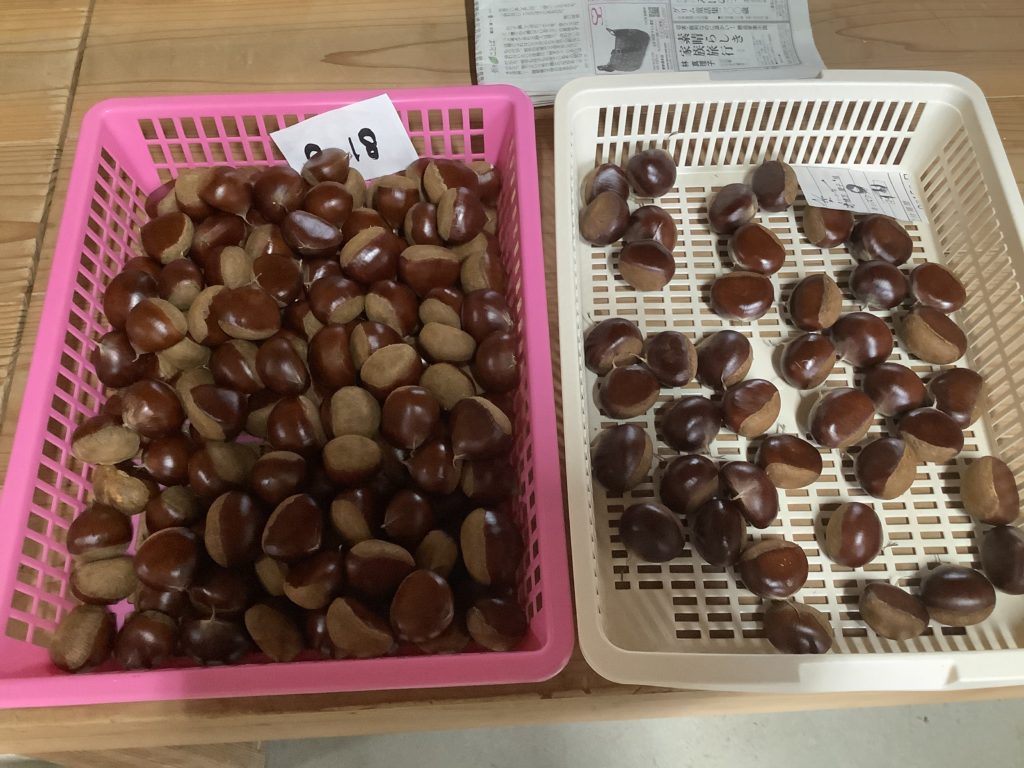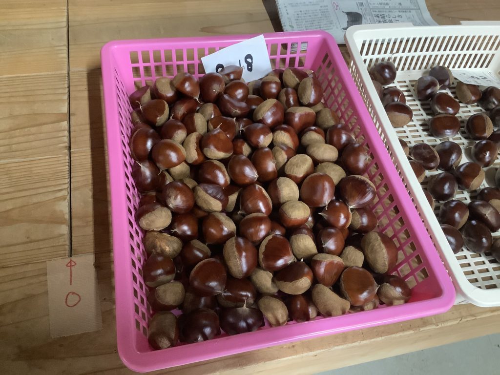2020年9月24日 / 最終更新日 : 2020年9月24日 ogatamakurinouen 栗畑 栗の発送が始まりました 一昨日、9/22火曜日より、栗の発送が始まりました。 ↑上の畑で採れた栗です。筑波メイン。 つやつや光ってきれいですね! ↑隣には利平もあります。まだ小ぶりですが、大きなものも出てきてます。 そろそろ、イガの口も割れて、本格的な収穫になりそうです。 順次発送いたしますので、いましばらくお待ち下さい。 Follow me! FacebooktwitterHatenaPocket コメントを残す コメントをキャンセル メールアドレスが公開されることはありません。 * が付いている欄は必須項目ですコメント 名前 * メール * サイト